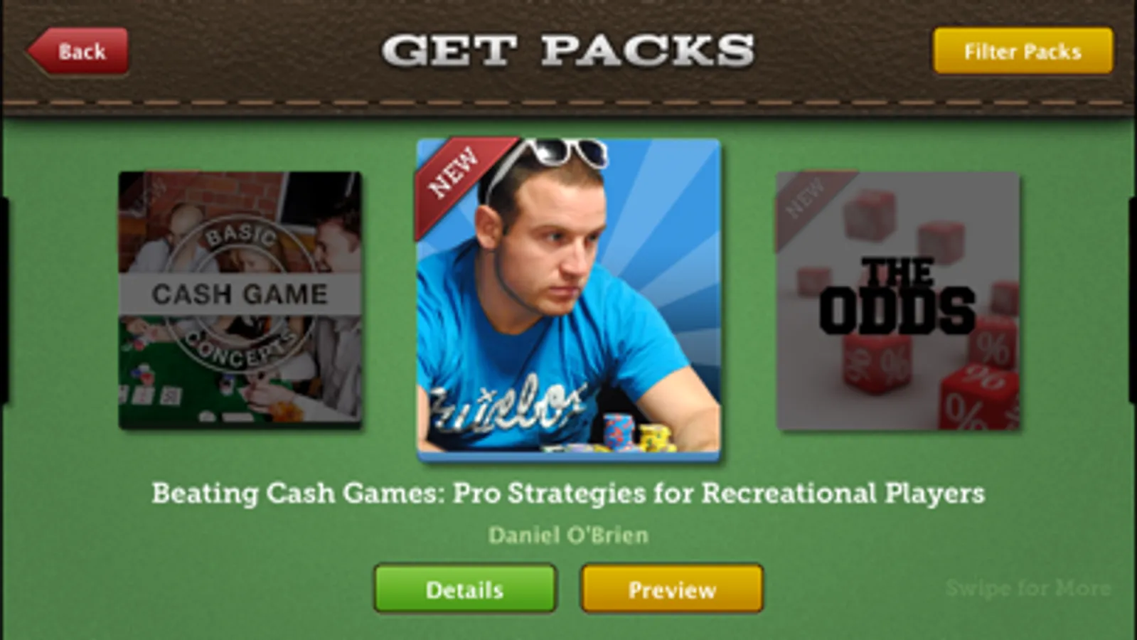 * Poker hands are packaged into Hand-Packs™, covering various aspects of Hold'em from low-stakes home games to major tournament events.