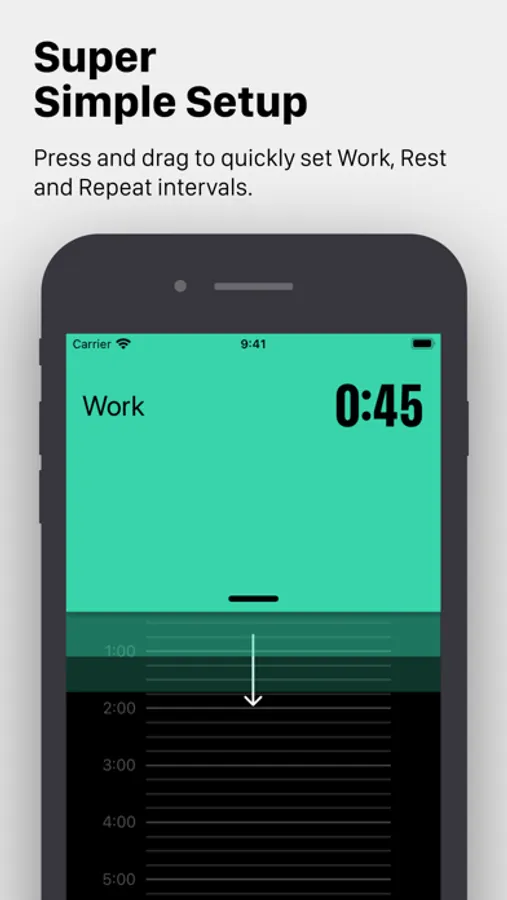 - Press and Drag to quickly set Work, Rest, and Repeat.