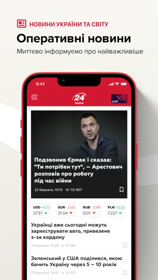 24 Канал – оперативно про головне в Україні та світі. В додатку ви знайдете актуальні новини, інтерв’ю, онлайни важливих подій, якісну аналітику та думки провідних експертів. Сюжети нашого телеканалу та безліч матеріалів, підготованих редакцією сайту, тепер доступні на вашому смартфоні та планшеті. Також, ми постійно проводимо опитування читачів на актуальні теми та готуємо тести і спецпроекти.