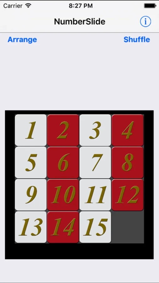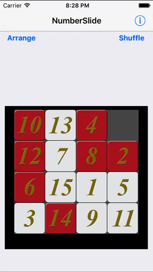 'Arrange' puts the tiles in numeric order. 'Shuffle' randomly sequences them. You can also shake the device to shuffle.