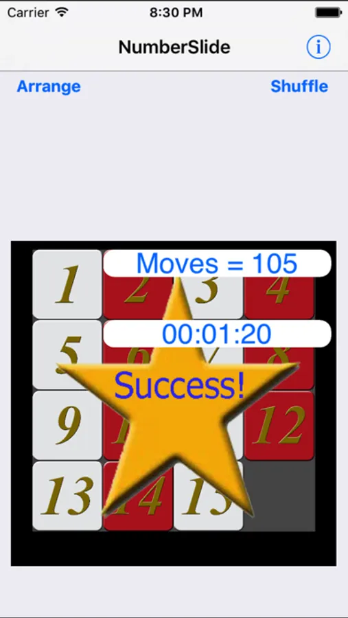 Updated for IOS. Added number of moves and time to complete after puzzle is solved.