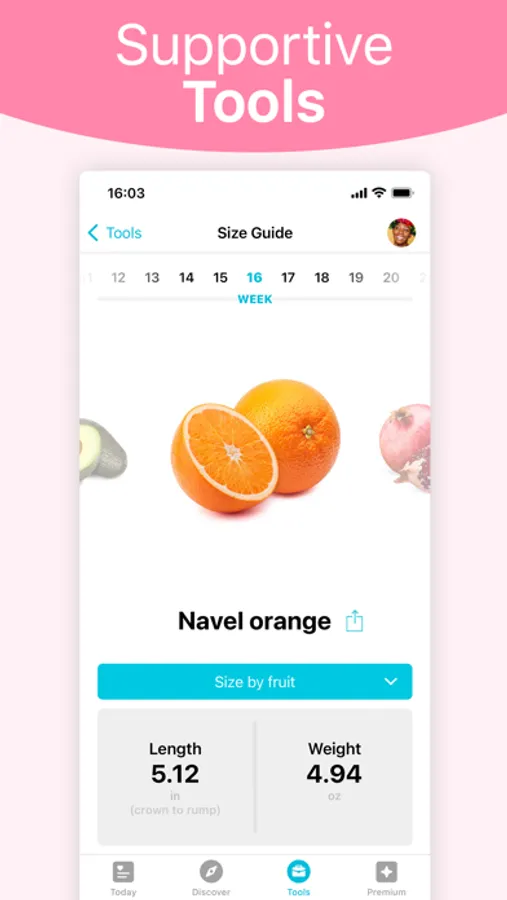 ► Baby Size Guide helps you visualize your baby's size in fruits, animals & sweets