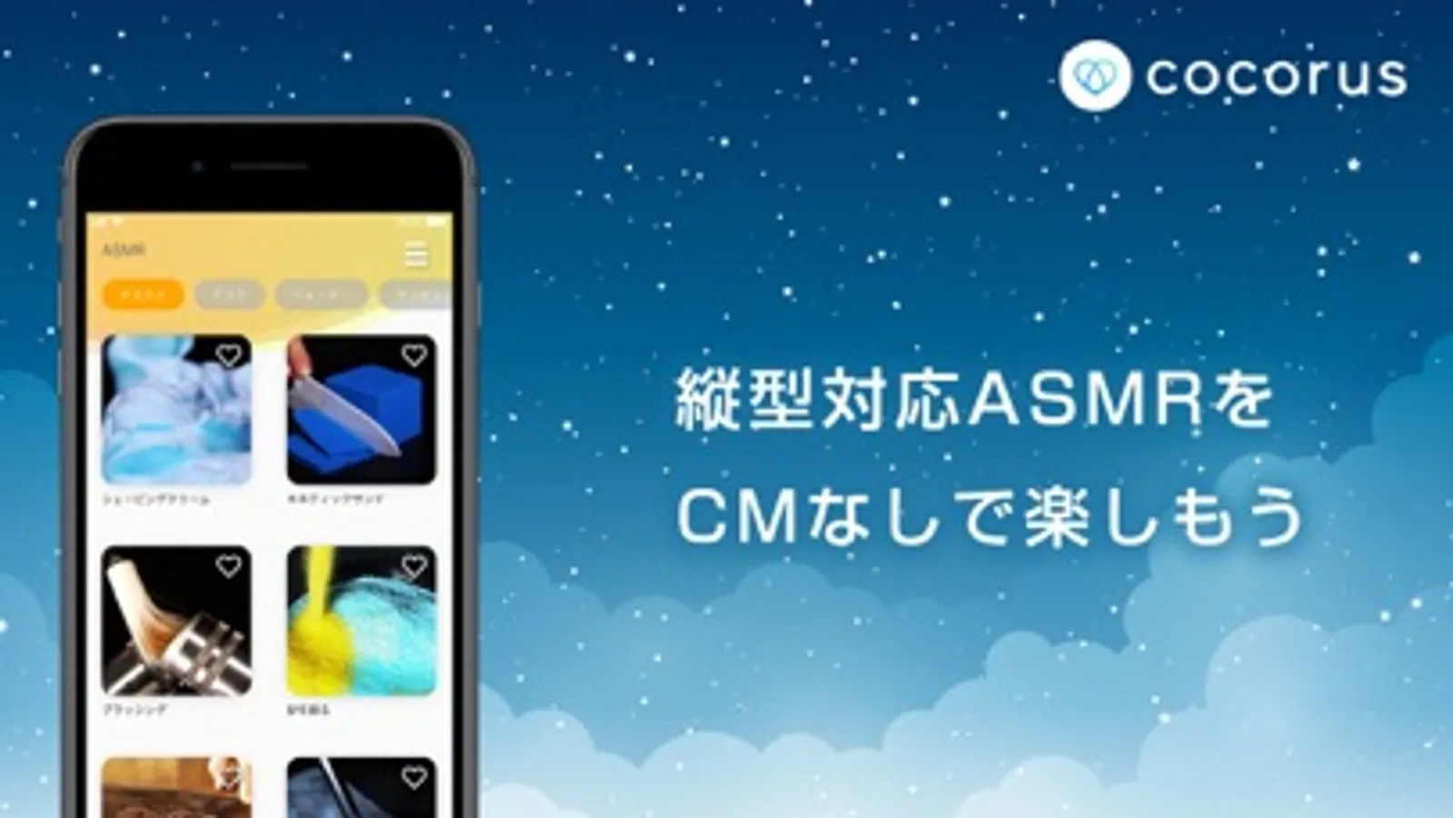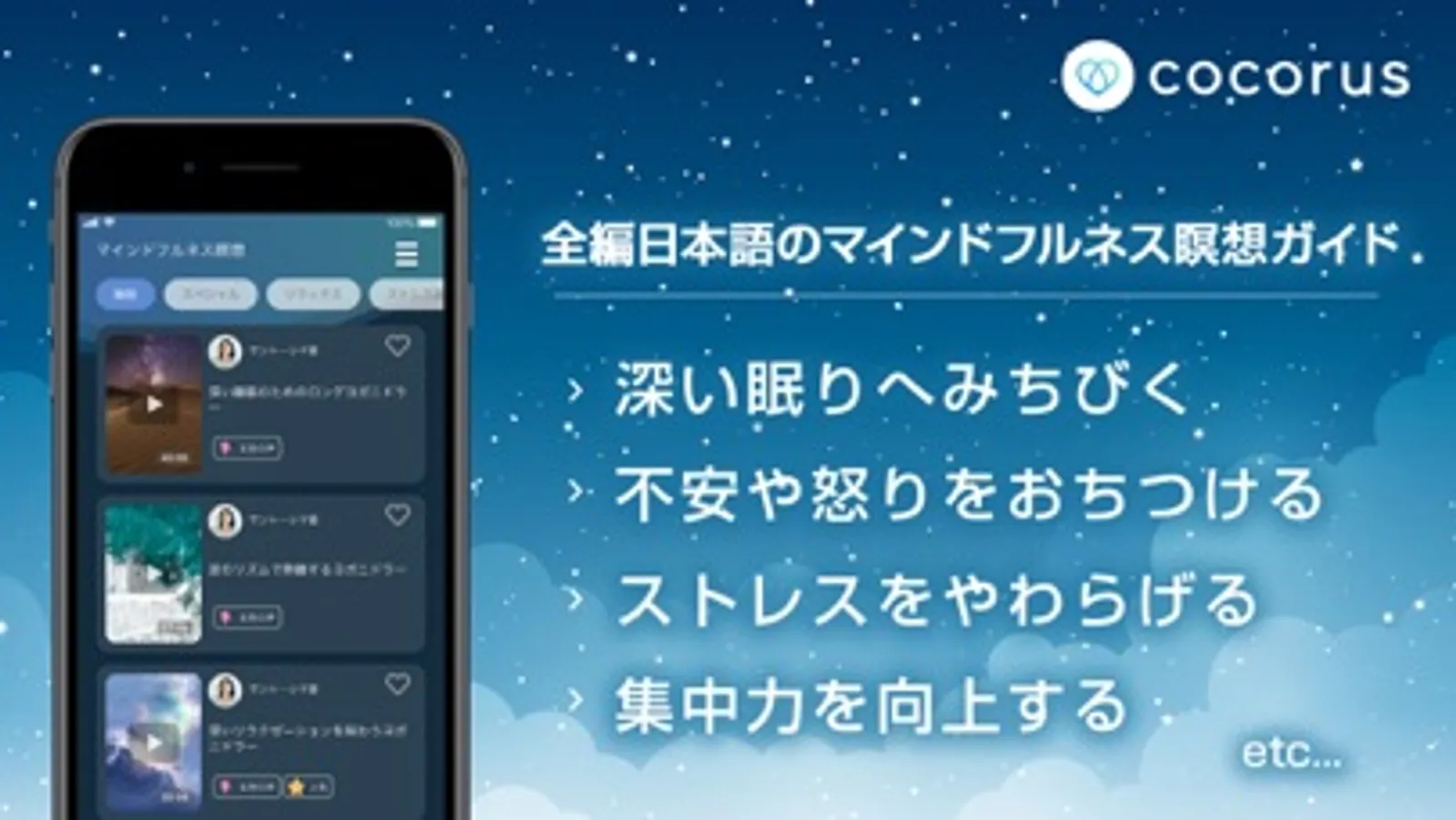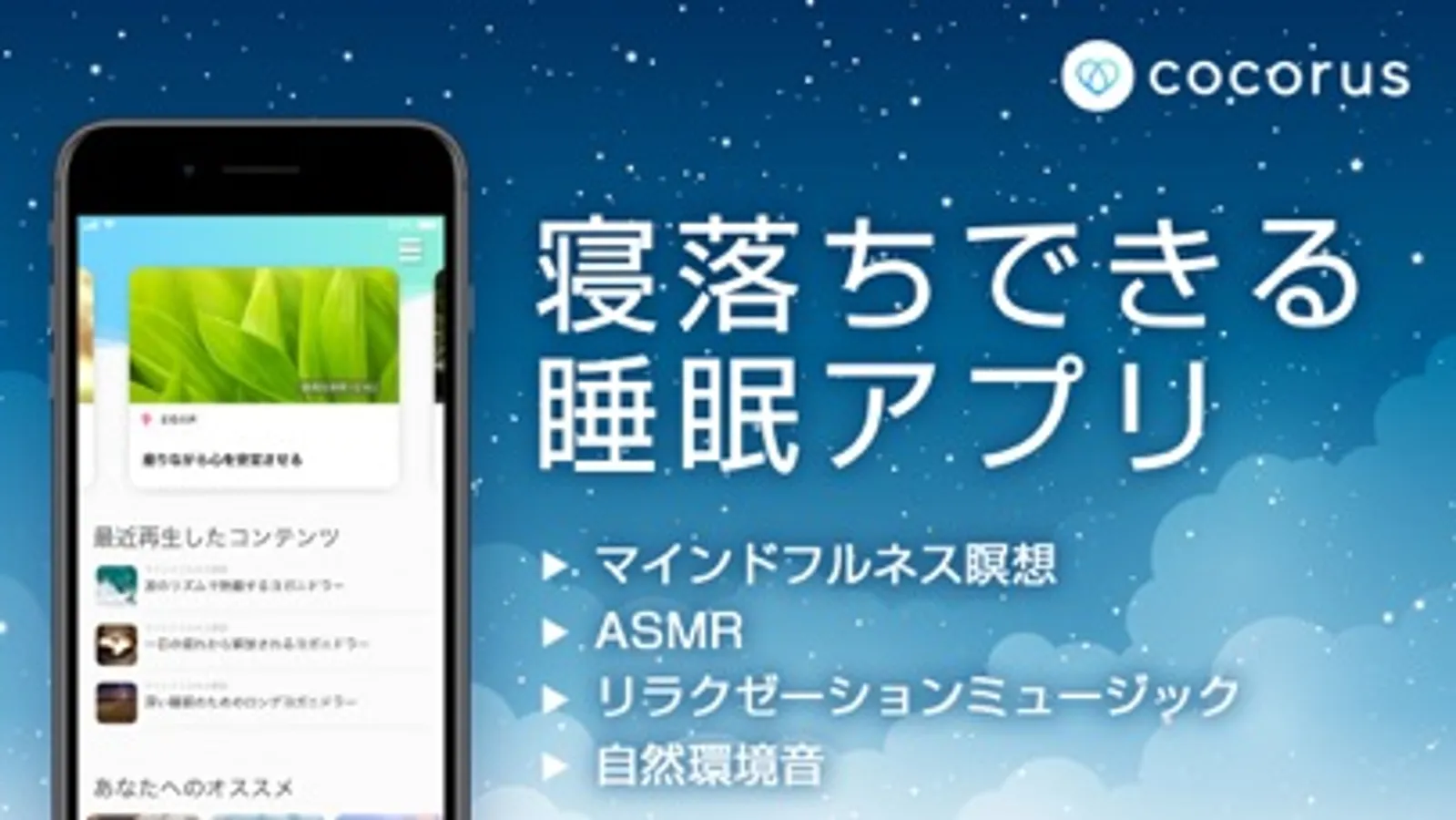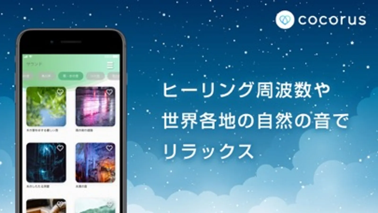 cocorus(ココルス)は、マインドフルネス瞑想・ASMR・自然環境音が視聴し放題の、あなたのココロをうるおす、リラクゼーションアプリです。