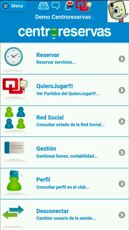 - RESERVA DE PISTAS: Le permite reservar pistas de los deportes disponibles en su club. Además podrá gestionar y reservar los partidos de los torneos a los que esté inscrito.