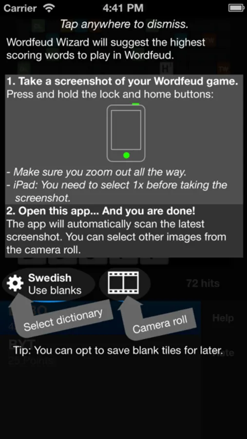 No extra tapping through menus. It takes literally a second for Wordfeud Wizard to present you with hundreds of possible solutions!