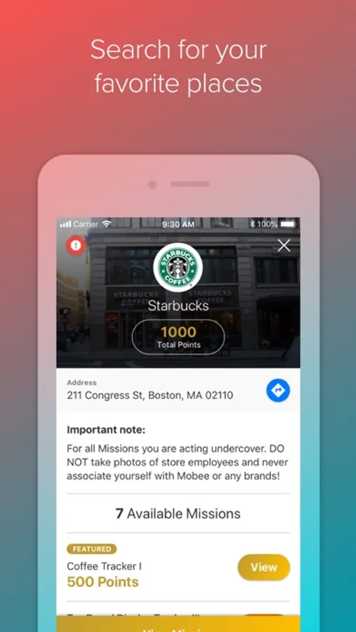 1. Open up Mobee and pick a business on the map - there are thousands of "Missions" across the US at a variety of retailers and restaurants.