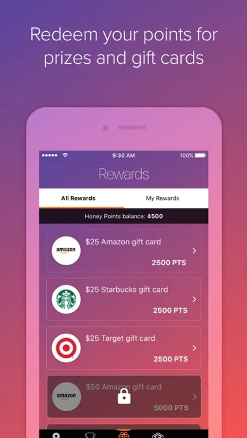2. Start a Mission! Answer simple questions while you shop or eat, and earn points for your work. As you progress, you will unlock achievements and level-up.