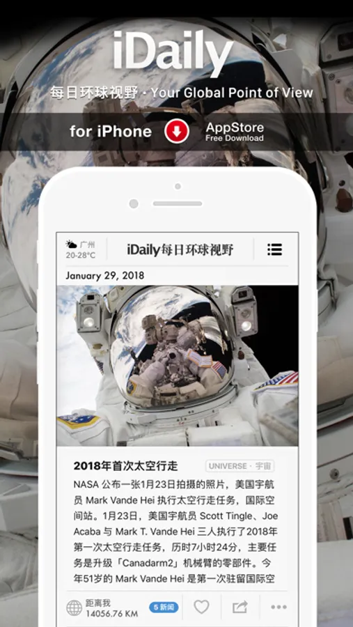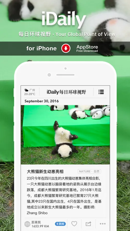 「iDaily · 每日环球视野」是第一个提供超越 3000px 超高清分辨率图片的中文媒体应用,每天由中国最出色的图片编辑独家挑选,为读者奉上最高清晰度的全球视野体验。