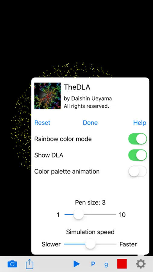 - Double tap: Put the fixed particles at the point. The size is possible to change in the setting.