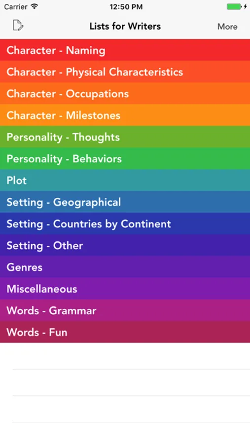 Lists for Writers is a great addition to any writer’s toolbox. Helpful to both novice and expert writers alike, this app delivers list after list of prompts and ideas for your brainstorming sessions: names, character traits, plot lines, occupations, obsessions, action verbs, and much more! Whether you are working on a creative writing project, a short story, an essay assignment, National Novel Writing Month / NaNoWriMo, or your next fiction book, this app helps get it done.