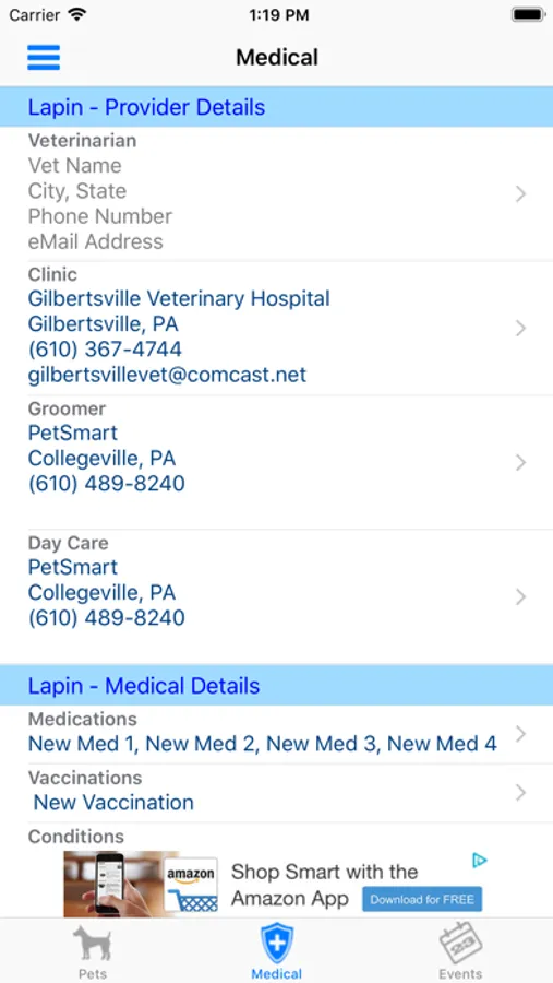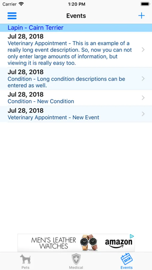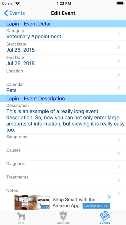 The app was designed primarily to simplied the recording and tracking of all of your pet's health related issues. It also allows you to keep this information at your finger tips for quick reference when answering any health related questions about your pet.