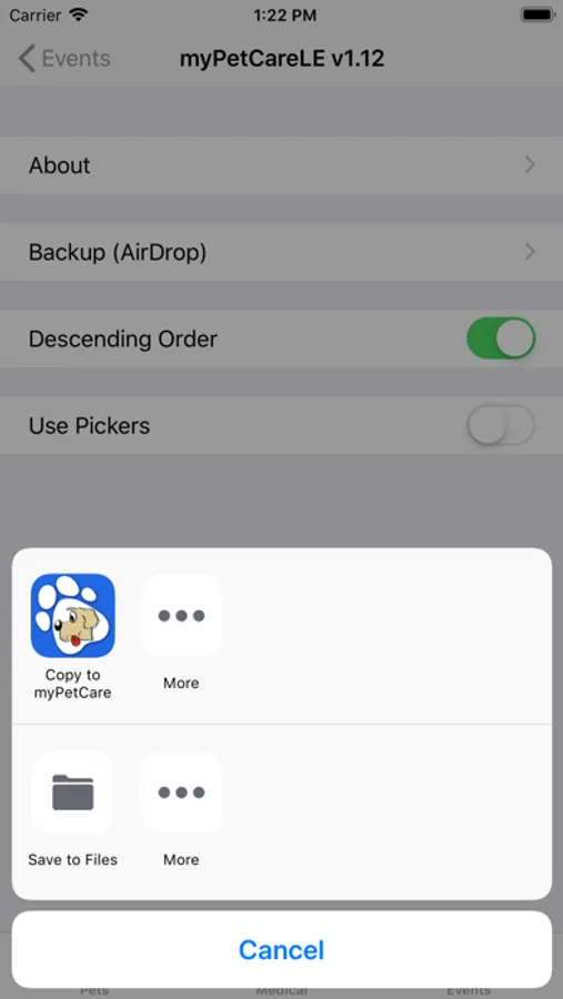 Then when you decide that you are ready to manage multiple pets you can purchase myPetCare. Using the backup and restore functions you are able to transfer your data from myPetCare LE to myPetCare in a few simple steps.