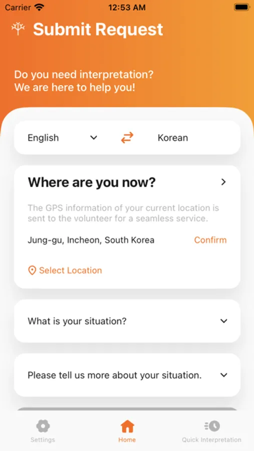 bbb application provides simple way of using bbb service. Instead of calling 1588-5644 and without ARS announcement, the phone call can be directly connected to the volunteers by choosing a language through the application. The language that has been used once is automatically saved, so for the after usage the interpretation service with same language can be provided without using the application.