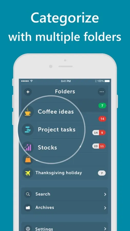 2. Create unlimited Folders(Categories) to categorize multiple to-do lists under each of them.