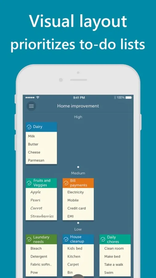 1. Visual interface and layout, provides absolute ease for managing errands and chores.