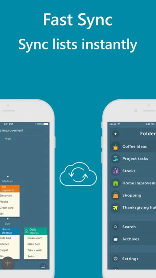 The App is now updated with great features like "Fast Cloud Sync", that instantly syncs all the to-do lists across devices, ’Today Items’ view, ‘Due Items’, Email Backup, as well as ‘Automatic backup’ of all data on cloud.