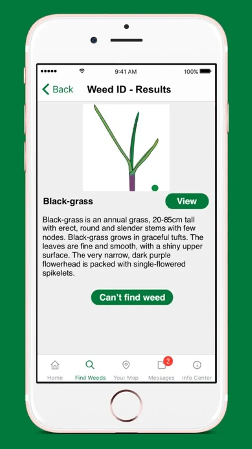 * Option to photograph the weed in your field and use to directly compare with images in the App library