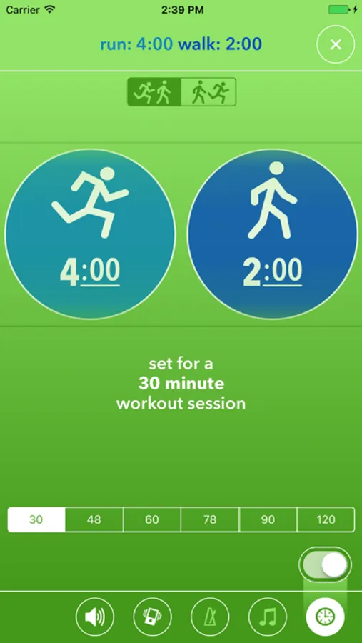 • Choose between Run/Walk or Walk/Run modes