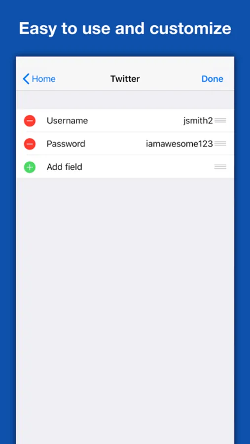 • ALL YOUR IMPORTANT DATA IN ONE PLACE: Key Cloud makes it quick and easy to store all your usernames, passwords, codes, email addresses, identification numbers and other kinds of data you need in your daily life. Set up one, highly secure master password and you can forget all the others. You can rely 100% on Key Cloud. Install it on your iPhone, iPad or iPod touch today and spend time doing the things you love instead of trying to remember that 10-character password you set up 5 years ago!