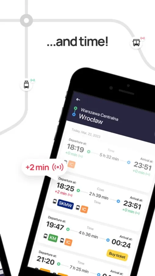 • real-time feature - shows the actual location of buses and trams (available in selected cities) - the position of the vehicle on the map, the current and expected delay, and the exact time when it will arrive at the stop.