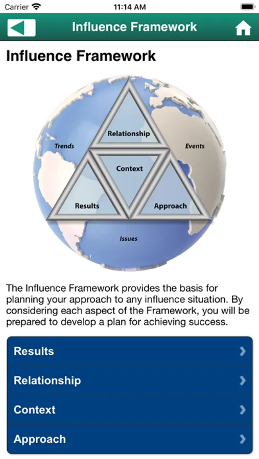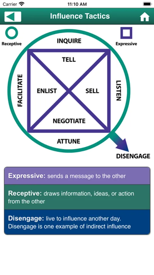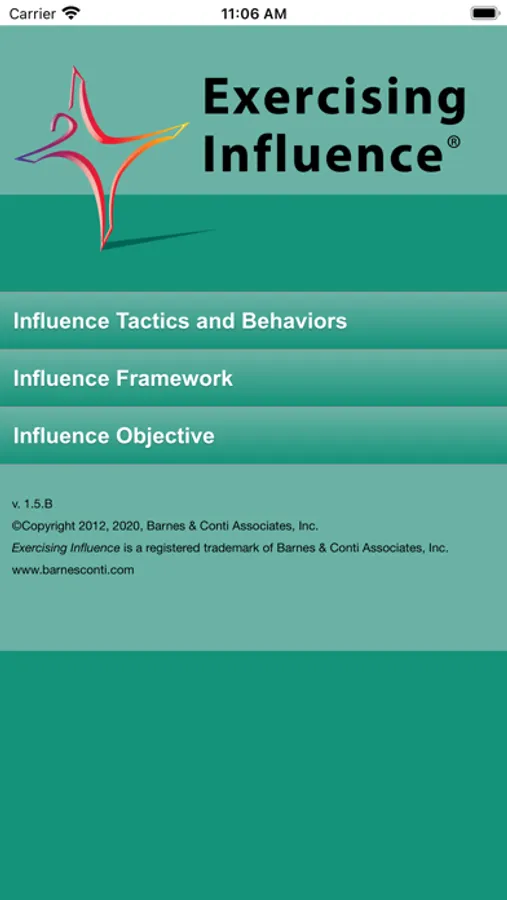 This app references the expressive and receptive influence tactics and behaviors from Barnes & Conti's popular Exercising Influence™ program. Noted author B. Kim Barnes describes and gives examples of all the influence behaviors. The app also includes a reference version of the Influence Framework that will help you plan your approach to any influence situation.