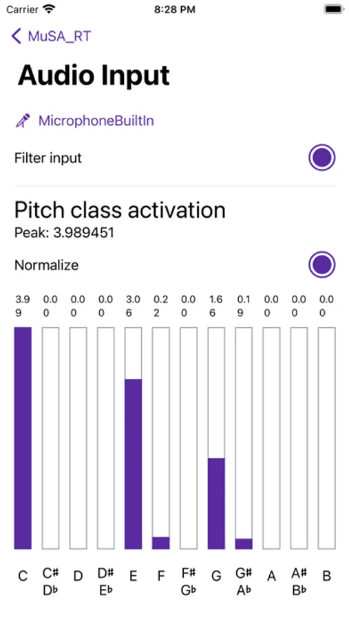 MuSA_RT interprets the audio signal from a microphone to determine pitch names, maintain shortterm and longterm tonal context trackers, each a Center of Effect (CE), and compute the closest triads (3-note chords) and keys as the music unfolds in performance.