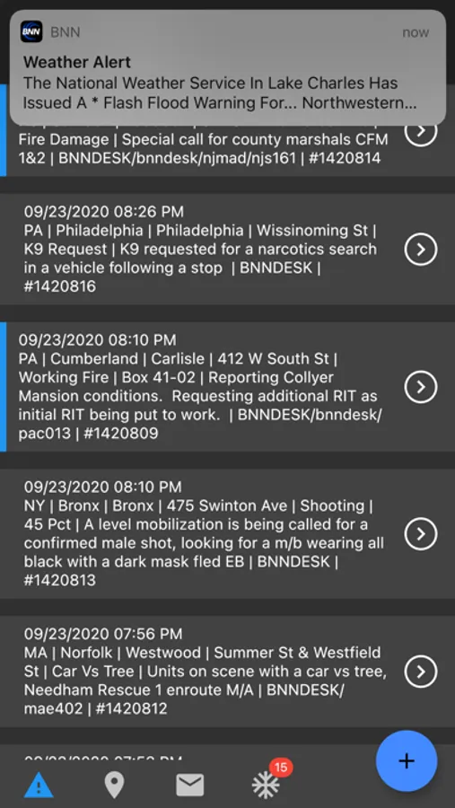 Free application for members of Breaking News Network (BNN). Real-time fire and news notification with proximity alerting, navigation, mapping, images, and videos. View and submit local news as it occurs.