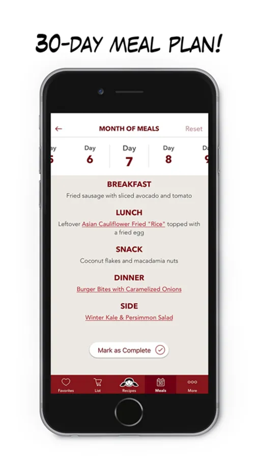 ● A Whole30-friendly 30-day sample meal plan with links to recipes.