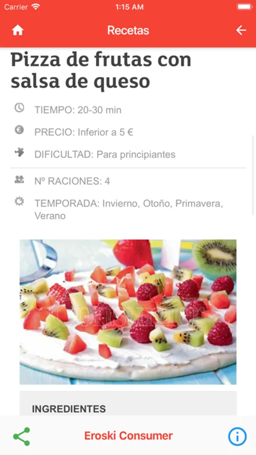 La app de Recetas de Eroski Consumer incluye también entre otras:
