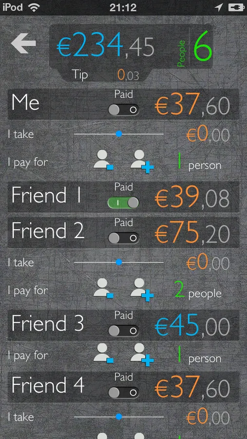 You are 13 and the bill is too complicated? One of the guests joined you for dessert and does not share the bill total. Never mind iShare simplifies your task and takes you a good evening.