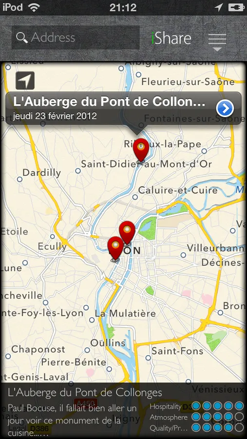 * iShare remembers all the restaurants and other places where you went, and diffuse if you want to your Facebook and Twitter contacts who know you and trust you.