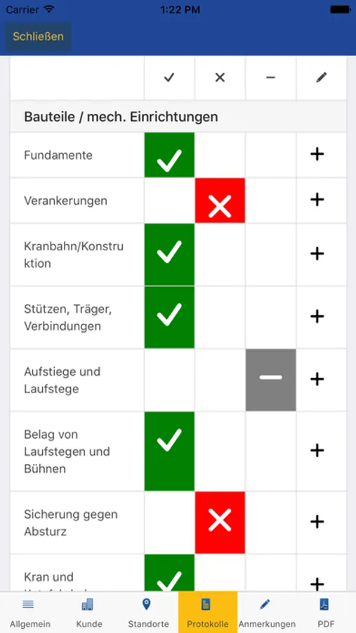Funktionen der Kranprüfer iPad App: