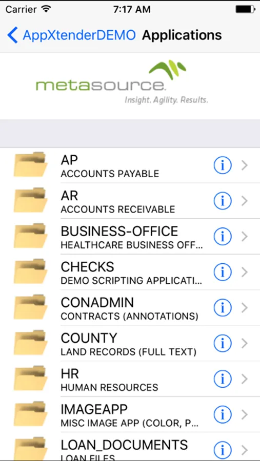 MetaMobil is easily configured to access any ApplicationXtender content management repository and provide a rich user experience.