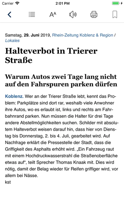 Komfort: Die App nutzt den Bedienkomfort und die Funktionalität des iPad und des iPhones im vollen Umfang. Die Darstellung ist schnell und flüssig, die Bedienung intuitiv. Zoomen Sie stufenlos in der originalen Zeitungsansicht. Genießen Sie hohen Lesekomfort durch optimierte Artikelansicht in der favorisierten Schriftgröße oder wechseln Sie in den Vorlesemodus. Bei Aktivierung des automatischen Downloads stehen ohne Wartezeiten die heruntergeladenen Ausgaben bereit.