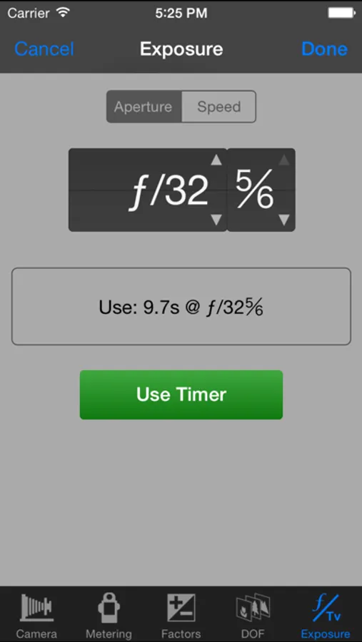 ◆ Calculates exposure by either selecting the Aperture or Shutter speed to use