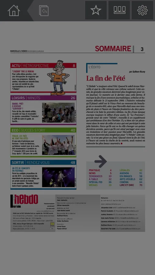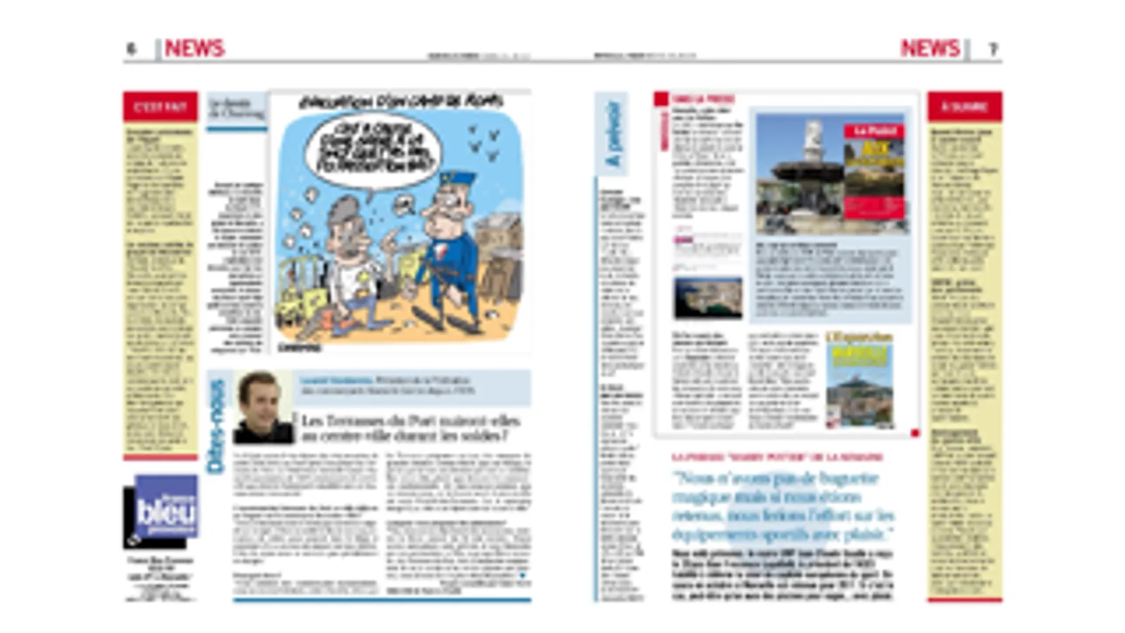 Depuis 10 ans, chaque semaine, Marseille l'Hebdo est la référence pour savoir ce qui se passe à Marseille. Retrouvez tous les mercredis 80 pages d'actu et de bons plans. Un city guide pratique et malin ! C'est d'abord 25 pages d'actualité pour tout savoir de la politique, du social, de l'économie, des médias et des évènements à ne pas louper mais aussi tout ce qu'il faut retenir de la vie de la ville. Retrouvez également dans la section "loisirs" les rendez-vous tendances et fashion, ceux pour les enfants et leurs parents, l'agenda de la night ainsi que les tables à essayer... ou à éviter ! Une grande partie (plus de 30 pages !) du journal est enfin consacrée aux sorties : musique, théâtre, danse, cinéma et expositions. Suivez nos coups de coeur et partez à la (re)découverte de Marseille !