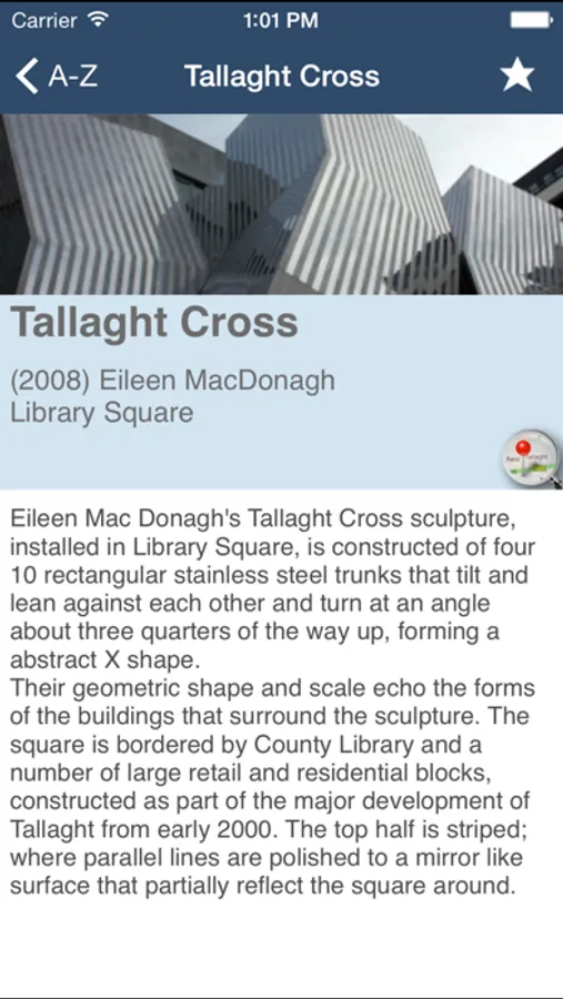 Art Trax takes you on a tour of South Dublin County’s rich collection of public art. It maps the locations where permanent artworks can be seen, and the locations where temporary works were presented. This App provides a complete overview of the public art landscape that has emerged in the county since the first public art commissions in the 1980’s.
