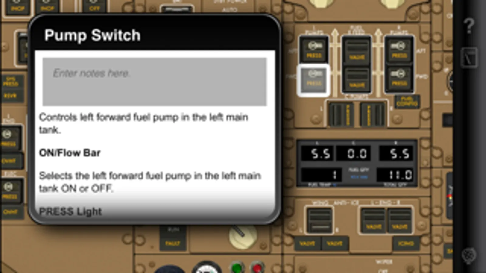 • Quick study tool for oral exam and checkride preparation – quiz yourself on cockpit switches, lights, and other indications