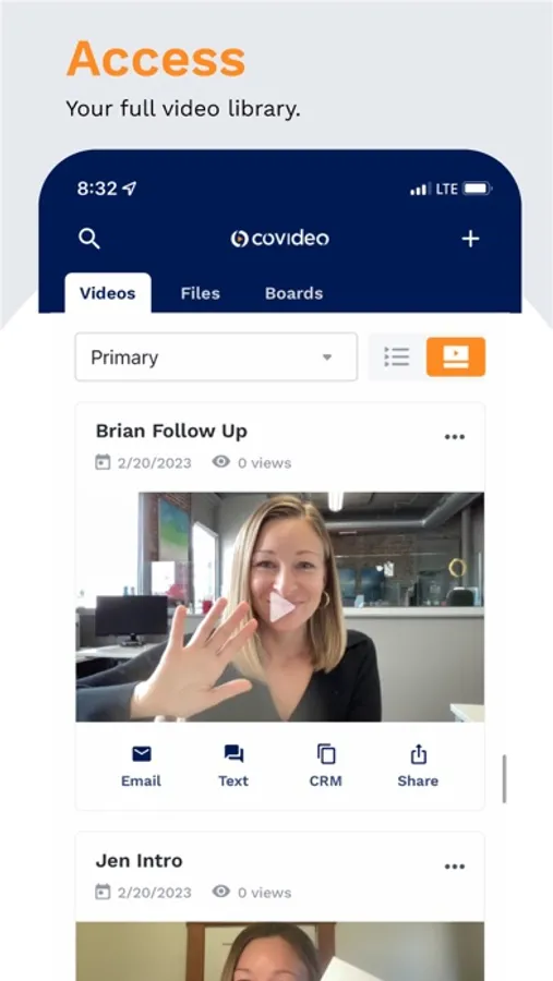 Covideo is the easiest way to record, share, and track video messages for business. Our simple-to-use mobile app makes it fast and easy to record videos on the go, using your iPhone!