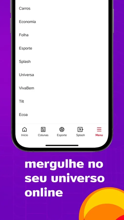 5 - FÁCIL DE USAR: com visual intuitivo, o menu do app reúne as principais áreas do UOL: Notícias, Esporte, Splash, Economia e VivaBem.