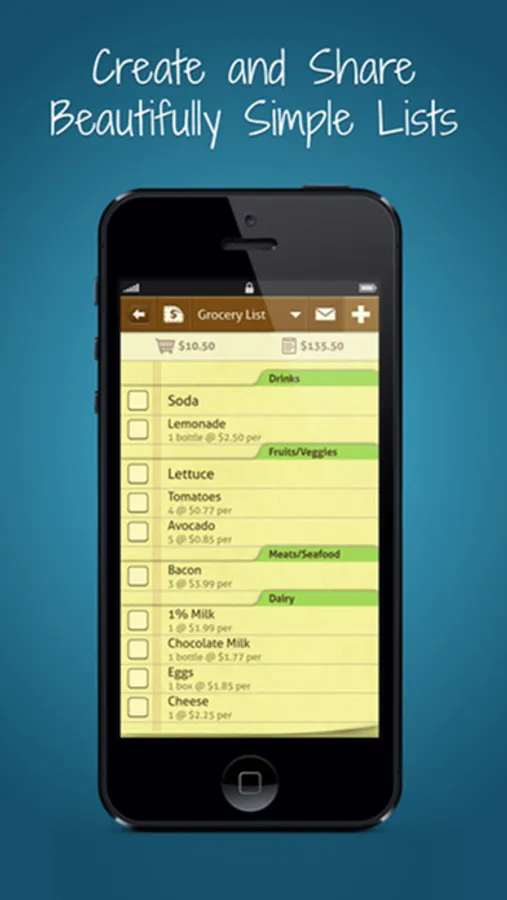 - Add quantities, measurements, prices, and additional notes to your food list items to keep perfectly organized