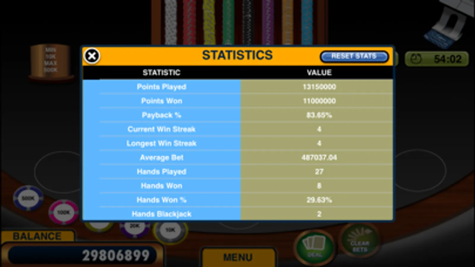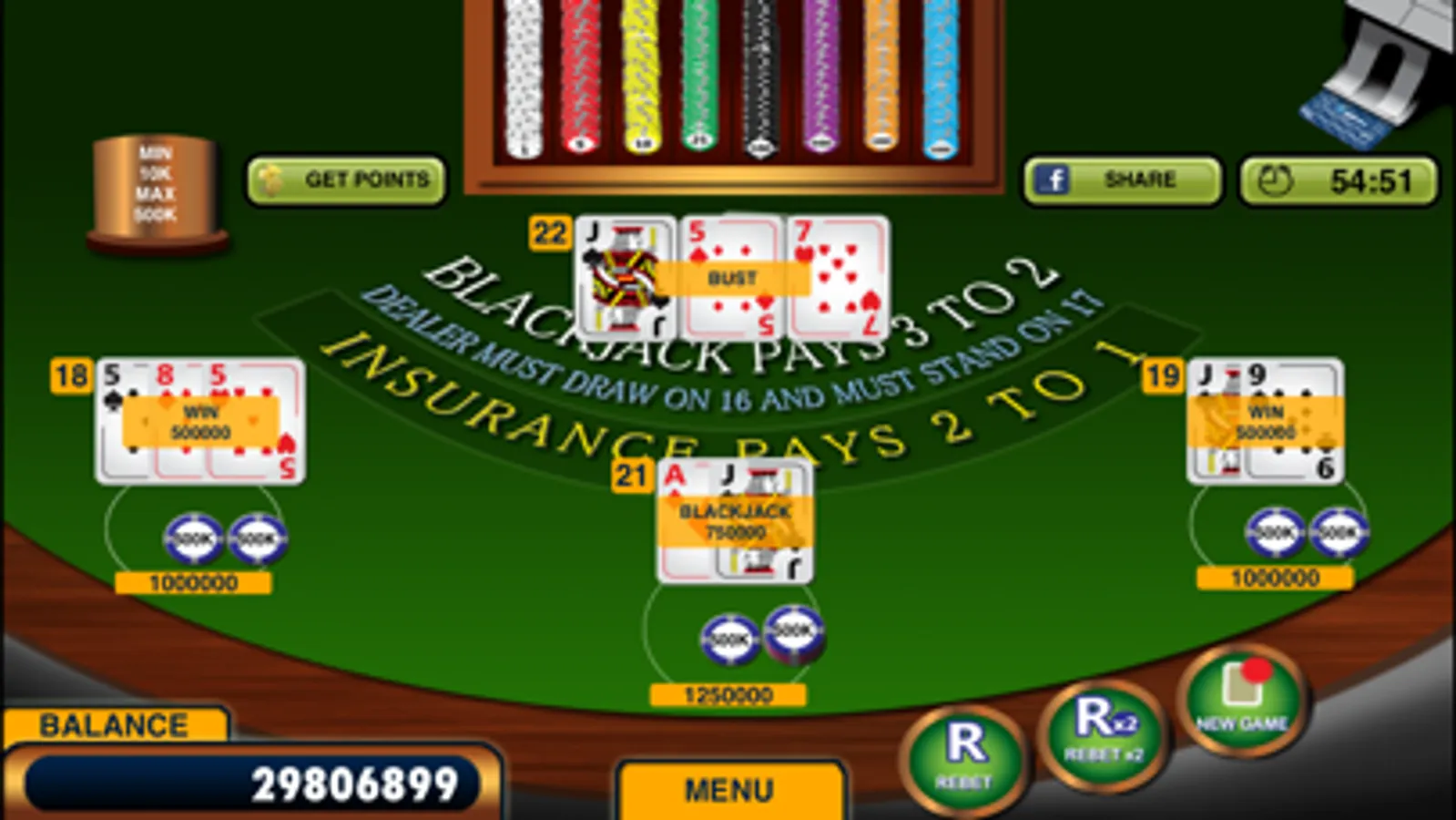 Everything from the rules, to the betting structure and excitement is true-to-life in Blackjack 21 +. Players start with a base stack of cash and play up the limits until they either go bust or sit down to gamble for millions on every hand in this classic casino card game! All normal Blackjack actions such as doubling down, splitting pairs, taking insurance, and more are all included too. To boot, the game allows players to save their gameplay statistics to easily reference how they do against the house in the long run and to help them hone their strategy as they play!
