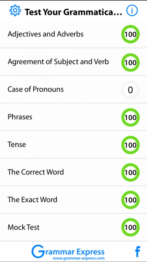 Test Your Grammatical Correctness Lite contains over 75 questions on different topics.