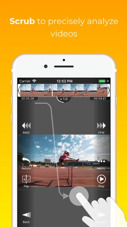 - Slide your finger from side to side to navigate through a video quickly or one frame at a time.