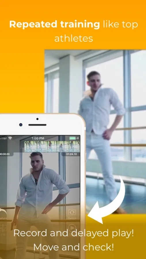- Turn your device into a mirror and overlay a guide video on your live actions.
