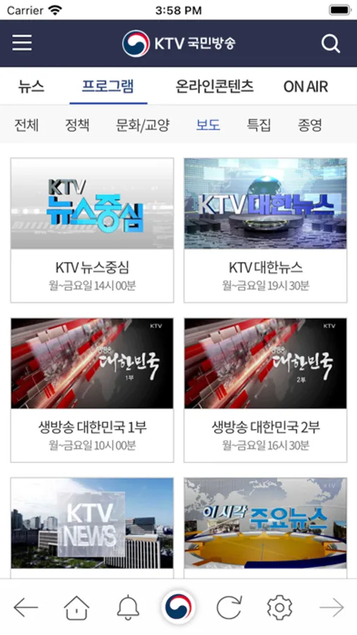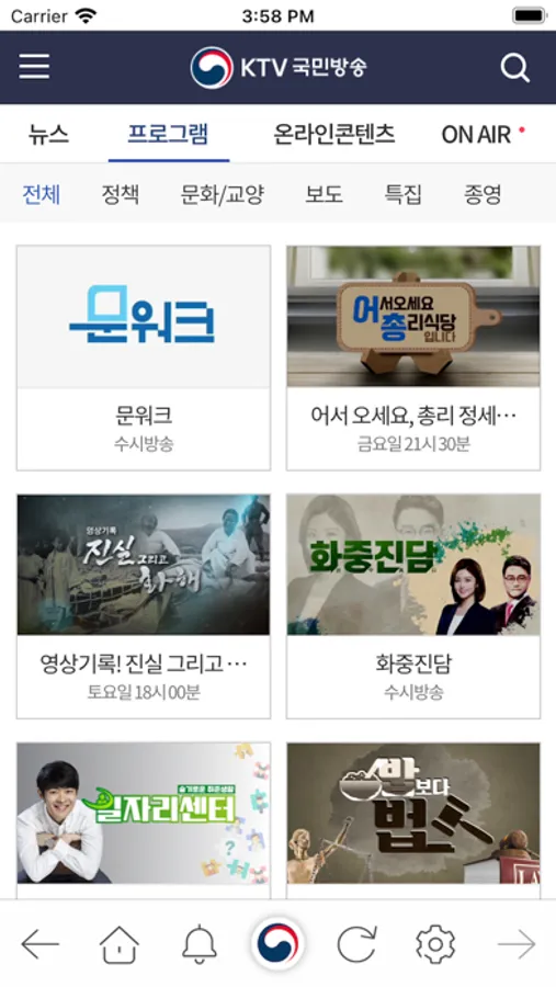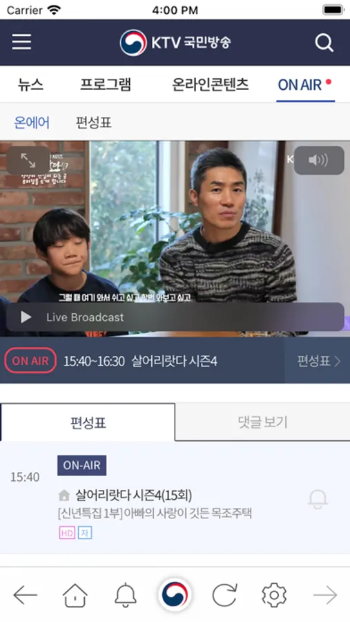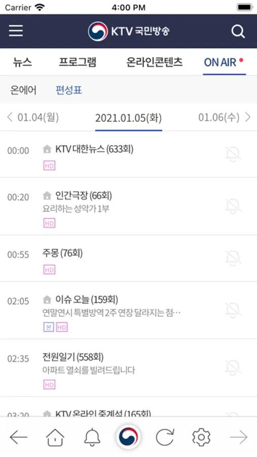 ON AIR : KTV 실시간 방송 및 편성표 제공