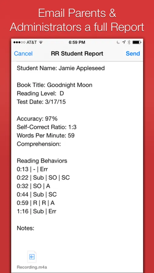 Running Record Assistant is the number one choice for calculating Running Record scores. The app combines all the standard running record calculator and stopwatch functions with the convenience of audio recording playback. Flagging lets you score as you go and quickly refer back to audio of difficult sections after the session. After entering the word count, you will be able to see students’ reading rate, percentage of accuracy, and self-correction ratio. Running Record Assistant is designed to be used by any teacher who assesses students using running records.