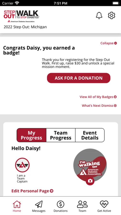 Please note: This application is only available to current registrants of the Step Out event. If you haven't registered yet for an upcoming event, please go to www.diabetes.org/stepout to register for an event near you.
