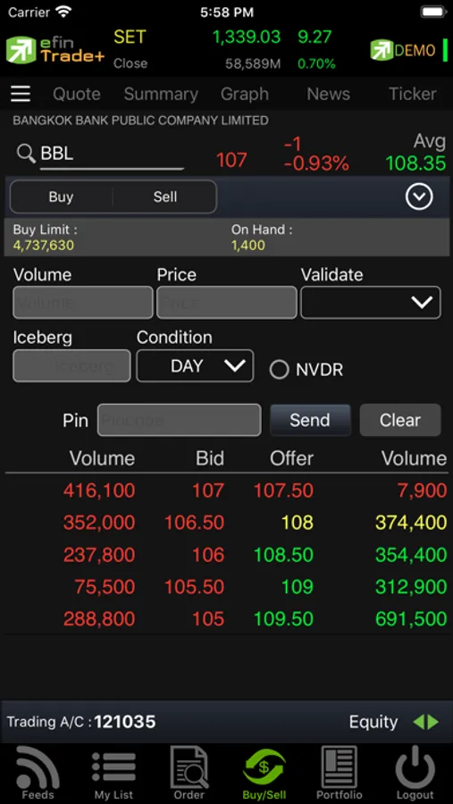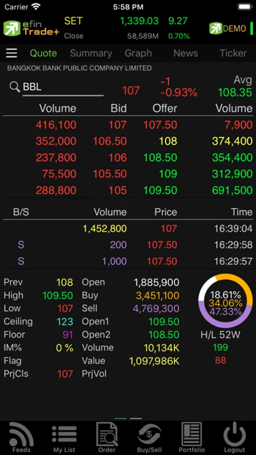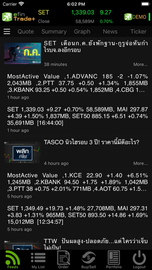 "efin Trade Plus" is iPhone Application for investors in The Stock Exchange of Thailand and "Thailand Futures Exchange", the " efin Trade Plus" will include important information. Display in real-time. Investors can also view the status of the portfolio. The order can be quickly at your fingertips.