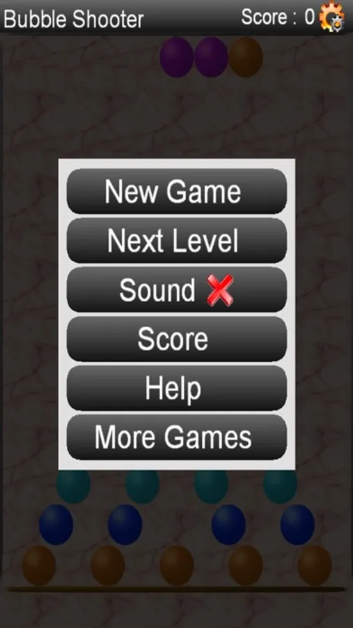Aim and tap the screen to launch the next bubble to form a cluster of 3 or more. Clear the board before it fills up to move to the next level. Use menu (top-right corner button) to change level or to check score.